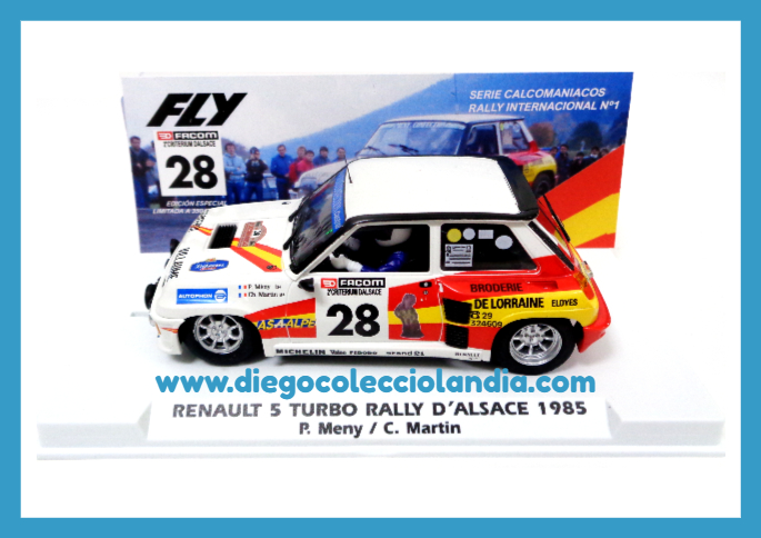 RENAULT 5 TURBO " RALLY D´ALSACE 1985 " DE FLY CAR MODEL REF / A2093 . EDICIÓN LIMITADA Y NUMERADA DE 275 UNIDADES . REFERENCIA DE LA NUEVA FLY . TODOS LOS COCHES DE LA WEB, SON COMPATIBLES CON CIRCUITOS SCALEXTRIC, SUPERSLOT, NINCO Y CARRERA... www.diegocolecciolandia.com . Tienda Scalextric Madrid España . Slot Cars Shop Madrid Spain