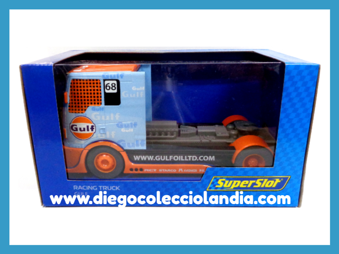 GULF RACING TRUCK DE SUPERSLOT REF/ H3772 . TODOS LOS COCHES Y CAMIONES DELA WEB, SON COMPATIBLES CON CIRCUITOS SCALEXTRIC, SUPERSLOT, NINCO Y CARRERA..... www.diegocolecciolandia.com . Tienda Scalextric Madrid. Tienda Slot Madrid . Tienda Slot España .