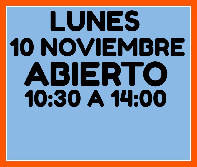 LUNES 10 DE NOVIEMBRE ABIERTO DE 10:30 A 14:00